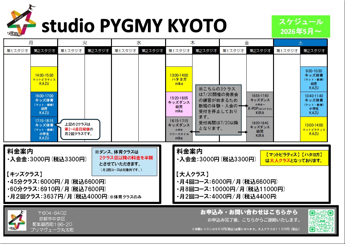 京都府京都市中京区の「studio PYGMY KYOTO」は、幼児から大人まで通えるフィットネススタジオです。